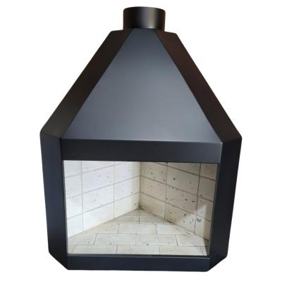 Lareira revestida com alvenaria e detalhes com ped